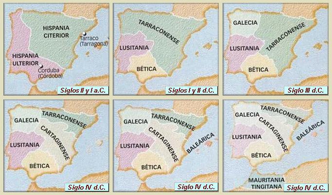 Red de comunicaciones: La civilización era urbana. Ciudades como Emerita Augusta, Hispalis, etc crecieron y se construyeron calzadas para poder controlarlas mejor. Las principales eran la Vía Augusta (unía el litoral este con Roma), Vía de la Plata (Emerita=Mérida con Asturica Augusta) y la Vía Transversal (Emerita Augusta y Caesaraugusta=Zaragoza).Administración del territorio: Lo dividieron en provincias, dirigidas por un gobernador y un consejo. Podían ser senatoriales o imperiales.En el año 127 a. C. estaban la Ulterior (al Oeste y Sur) y la Citerior (centro, norte y este). En el siglo III d. C. el emperador Diocleciano hizo una nueva división para repartir mejor el poder. Así, las provincias Baetica, Lusitania, Tarraconensis, Gallaecia, Cartaginensis, Balearica y Mauritania Tingitana formaban la diócesis de Hispanarium.