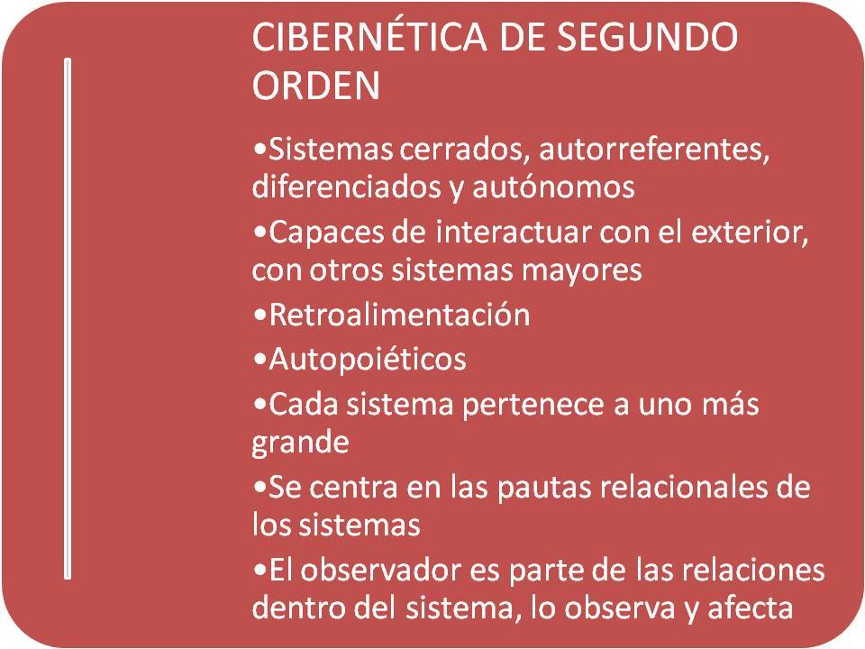 Basado en la explicación mecanicista, sugiere que lo importante dentro de las organizaciones (sistemas) son las relaciones que se dan entre las partes. Para comprenderlo es necesario tener en cuenta la Teoría General de Sistemas, donde se define todo organismo como un sistema dentro de una organización mayor.En la década del 70, comenzó una nueva corriente dentro de la cibernética, que rompía la noción tradicional de la "objetividad" del investigador, dando origen al Cibernética de segundo orden o Cibernética de la Cibernética.