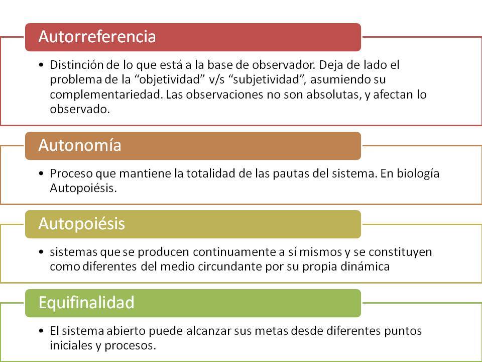 Lo principal no son los objetos si no la pauta que organiza los procesos. Incluye ideas de información, control y retroalimentación. La distinción entre las organizaciones de los sistemas se denominan puntuaciones. La visión del mundo es consecuencia de cómo lo trazamos o puntuamos. El primer paso es distinguir: ese "algo" que se observa, de "todo lo que ese algo no es" puntuación. Dos caras de la misma moneda: Estabilidad y cambio.