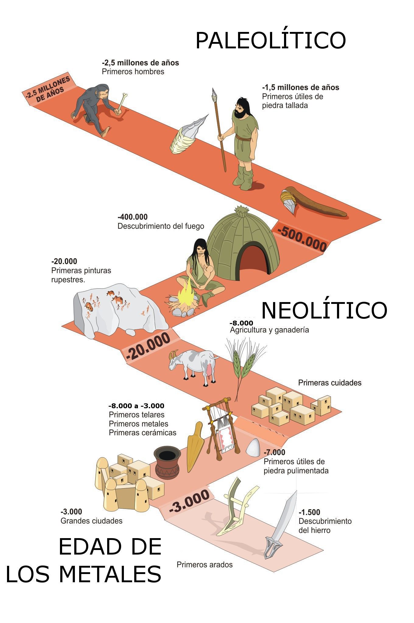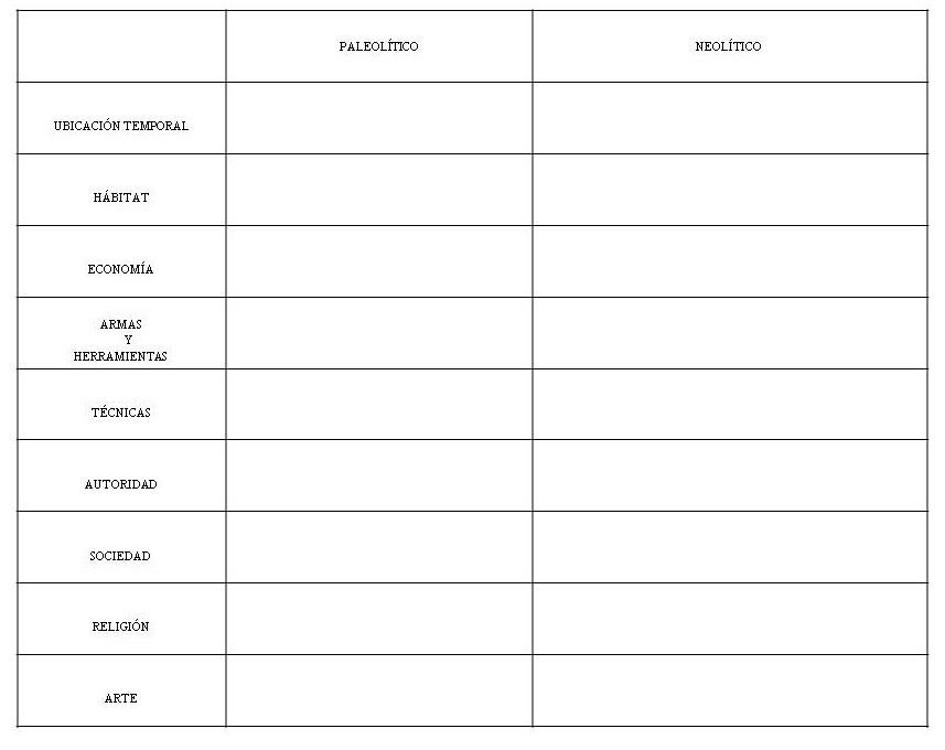 3) Copia en el cuaderno y completa el siguiente cuadro comparativo de" Etapas de la Prehistoria" :