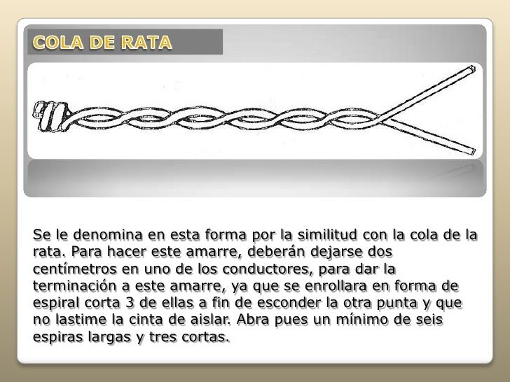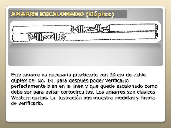 Lo amarres anteriores son sólo alguno de los más conocidos. Para aprender mas te recomiendo visitar la siguiente liga. http://besten.com.mx/Manuales/Manual-de-Instalaciones-Electricas-en-BT-2009.pdf