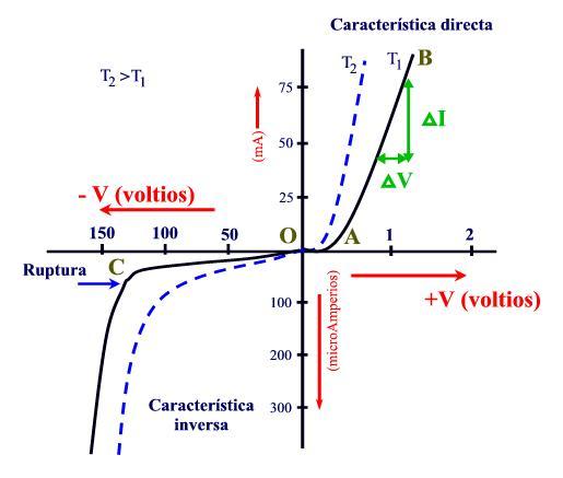 Polarización inversa Para polarizar en sentido inverso ésta unión se conecta el potencial negativo de la fuente en el material P y el potencial positivo en el material N, en ésta condición los electrones, portadores mayoritarios, del material N son atraídos por el potencial positivo de la fuente y los huecos, portadores mayoritarios, del material P son atraídos por el potencial negativo de la fuente generando un ensanchamiento de la zona de Depleción, la cual depende de la magnitud del voltaje inverso aplicado, la zona de Depleción deja de aumentar en el momento en que su diferencia de potencial es igual a la tensión inversa aplicada. Cuando la tensión inversa aplicada al diodo es más grande al especificado, el diodo sufre un daño irreversible, se abre y deja de ser útil.