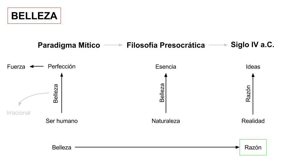 Es decir, de un primitivo impulso hacia la perfección, llegamos en el siglo IV a.C. a lo verdaderamente racional. La razón, por tanto, se crea en el concepto arcaico de belleza.