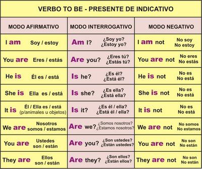 ¿Qué significa?El verbo "to be" se traduciría al castellano como "ser" o "estar". Dependiendo del sentido de la frase, lo traduciremos de una forma u otra.Usos especiales:Sirve para expresar la edad, en cuyo caso se traduciría como el verbo "tener" Mary is 20 years old / Maria tiene 20 años I am 21 / Yo tengo 21 años How old are you? / ¿Cuántos años tienes?Sirve también para expresar las sensaciones y tendría como significado "tener" Are you hungry? / ¿Tienes hambre? He is thirsty / Tiene sedTambién sirve para hablar sobre el tiempo atmosférico, traduciéndose como "hacer" It's windy / Hace viento It's very cold / Hace mucho frío¡IMPORTANTE!En el Presente, las formas afirmativa y negativa se pueden contraer, mientras que en la forma interrogativa no. En el pretérito solamente la forma negativa puede contraerse.Las formas contraidas suelen utilizarse en la conversación, pero no se usan de forma escrita salvo cuando el propio escrito tiene un carácter informal o refleja una conversación. TO BE + INFINITIVO Cuando al verbo 'to be' le sigue un infinitivo adquiere una importancia especial: - Es una forma de dar instrucciones u órdenes de manera impersonal. She is to stay here till we return / Ella debe quedarse aquí hasta que volvamos(en lugar de 'She must stay....') - Sirve para establecer un plan She is to be married next year / Ella va a casarse el año próximo TO BE + GOING TO Expresa una forma de futuro. Equivale a las expresiones españolas "ir a..., estar punto de... tener la intención de..., etc." We are going to the theatre tonight / Vamos al teatro esta nocheI am going to travel to Buenos Aires next Monday / Tengo la intención de viajar a Buenos Aires el próximo lunes. TIEMPOS VERBALES: