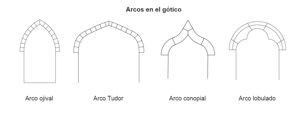 El arco ojival es uno de los elementos técnicos más característicos de la arquitectura gótica, y vino a suceder al arco de medio punto, propio del estilo románico. El arco ojival, a diferencia del arco de medio punto, es más esbelto y ligero por transmitir menores tensiones laterales, permitiendo adoptar formas más flexibles, resulta más eficaz, pues gracias a su verticalidad las presiones laterales son menores que en el arco de medio punto, permitiendo salvar mayores espacios. A lo largo del gótico el arco apuntado mostró variantes como el arco trilobulado, el arco conopial utilizado durante el denominado gótico flamígero o el arco Tudor, durante el denominado gótico perpendicular inglés.