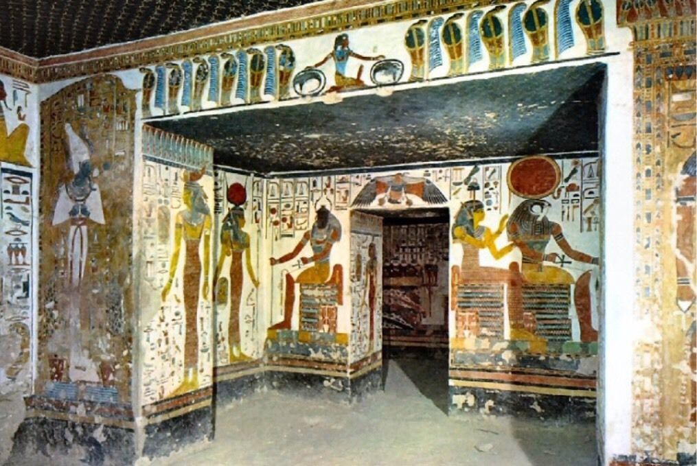 Entre los siglos XXV y XII a. C., los egipcios tenían una visión muy positiva de la vida después de la muerte, anhelaban una eternidad en la pudieran seguir disfrutando de los placeres que tuvieron en vida. Por este motivo, las pinturas que decoran las tumbas estaban al servicio de temas religiosos y mágicos, y las escenas tenían por finalidad garantizarla en el más allá.