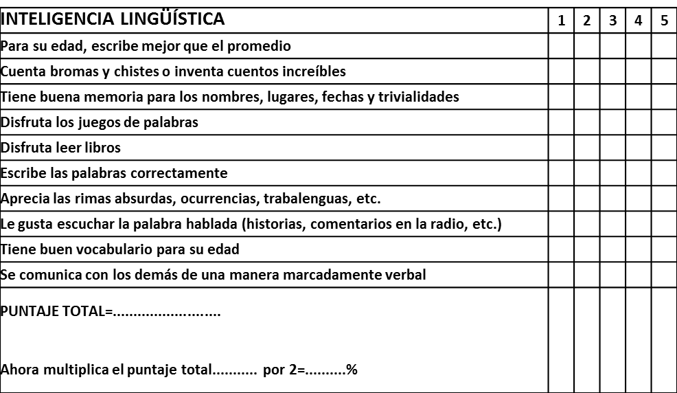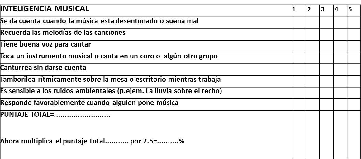 Triunfar en en los negocios o en los deportes, requiere ser inteligente pero en cada campo se utiliza una inteligencia distinta. por lo que es importante analizar las inteligencias múltiples para conocer cual es la que tenemos o tienen nuestro alumnos, hijos para apoyarlos de tal manera aprendan de manera de acuerdo a la inteligencia con mayor potencial. Según esta teoría, todos los seres humanos poseen las ocho inteligencias en mayor o menor medida. Al igual que con los estilos de aprendizaje. no hay tipos puros, y, si los hubiera, les resultaría imposible funcionar. Para Gardner es evidente que, sabiendo lo que se sabe sobre estilos de aprendizaje, tipos de inteligencia y estilos de enseñanza, es absurdo que se siga insistiendo en que todos los alumnos aprendan de la misma manera.Se espera que con el desarrollo de la temática haya quedado claro cada uno de las inteligencias múltiples y esperando que se haya cumplido una buena expectativa. con el test no solo se espera conocer que tipo de inteligencia tienes mas desarrollado sino que existen actividades que se pueden poner en práctica las demás inteligencias porque los seres humanos somos capaces de lograr metas y solucionar problemas.