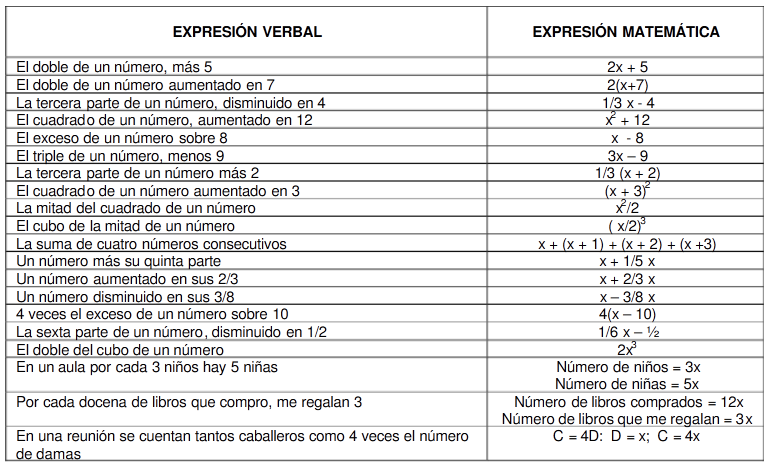 ESTAS SON LAS FORMAS EN LAS CUALES SE PUEDE EXPRESAR EL LENGUAJE ALGEBRAICO