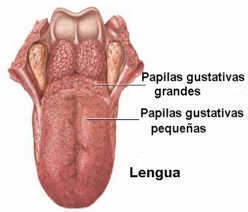 Los receptores para el gusto son las papilas gustativas que se encuentran principalmente en la lengua, pero también están localizadas en el paladar y cerca de la faringe. Las papilas gustativas pueden detectar cuatro gustos básicos: salado, dulce, amargo, y agrio.