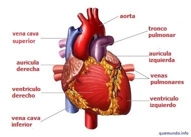 El corazón es un músculo hueco situado en el mediastino medio interior, su longitud es de 12 cm, su ancho de 9 cm y su grosor de 6 cm. De la cresta de Haller al diafragma mide 14 cm, está localizado a do terceras partes del lado izquierdo y a una tercera parte del lado derecho. Tiene cuatro cavidades, de las cuales dos son izquierdas (aurícula y ventrículo) y dos son derechas (aurícula y ventrículo) Las aurículas se comunican con las venas y los ventrículos con las arterias. El corazón tiene tres capas: Endocardio que es una capa delgada, contiene epitelio plano estratificado, no estratificado y no queratinizado, Miocardio que es músculo estriado cardiaco, este a su vez es más abundante en el ventículo izquierdo que en el derecho; Epicardio es parte del tejido conectivo formado por celilas mesoteliales productoras de líquido pericárdico. Se puede dividir al corazón en dos partes: corazón izquierdo y derecho, el primero recibe sangre de la aurícula, sale de la aorta , viaja por el cuerpo, por medio de red capilar va a la célula y lleva sangre oxigenada que es convertida en carboxigenada para pasar al corazón derecho, donde recibe sangre de la aurícula, va a ventrículo, posteriormente a la arteria pulmonar, se va a pulmones, es una red capilar no periférica, por lo que incorpora oxígeno y vuelve a oxigenarse. En el corazón izquierdo se va a dar la circulación menor y en el der3echo la circulación mayor. Las válvulas son sistemas que evitan reflujo de la sangre, están formadas por un anillo fibroso y unas valvas, las cuales se abren y se cierran para que pase la sangre. Existen 4 tipos de válvulas en el corazón: Auriculares ventriculaes izquierda y derecha, y arteriales izquierda y derecha.