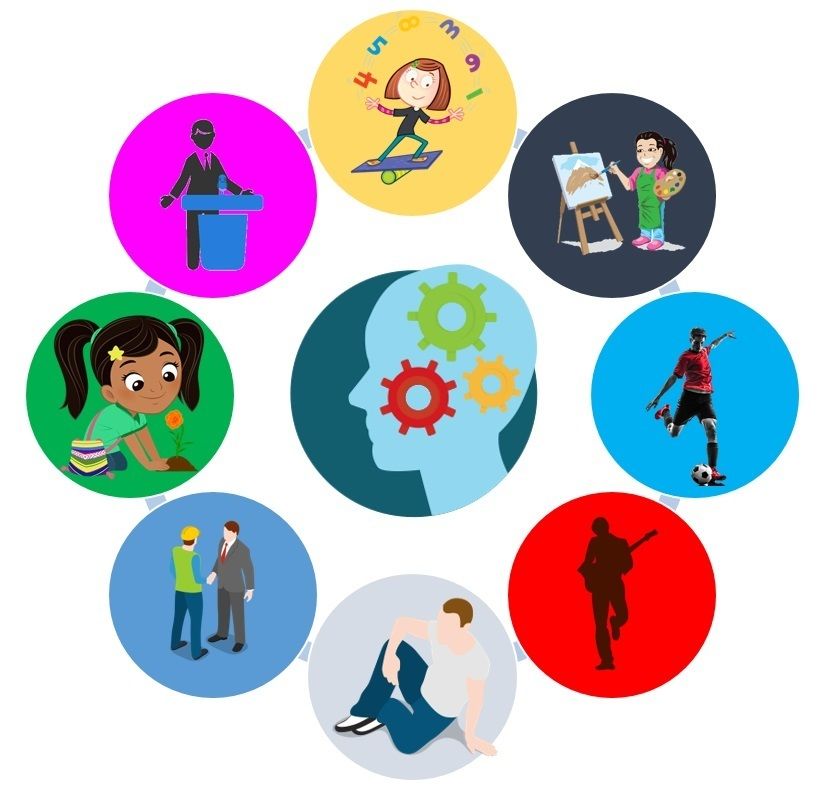 Howard Gardner y su equipo de la Universidad de Harvard han identificado ocho tipos distintos: 1) Inteligencia lingüística, La que tienen los escritores, los poetas, los buenos redactores. Utiliza ambos hemisferios. 2)Inteligencia lógica-matemática, la que se utiliza para resolver problemas de lógica y matemáticas. Es la inteligencia que tienen los científicos. Se corresponde con el modo de pensamiento del hemisferio lógico y con lo que la cultura occidental ha considerado siempre como la única inteligencia. 3) Inteligencia espacial, consiste en formar un modelo mental del mundo en tres dimensiones; es la inteligencia que tienen los marineros, los ingenieros, los cirujanos, los escultores, los arquitectos o los decoradores. 4) Inteligencia musical, es aquella que permite desenvolverse adecuadamente a cantantes, compositores, músicos y bailarines. 5) Inteligencia corporal-cinestésica, o la capacidad de utilizar el propio cuerpo para realizar actividades o resolver problemas. Es la inteligencia de los deportistas, los artesanos, los cirujanos y los bailarines. 6) Inteligencia intrapersonal, es la que permite entenderse a sí mismo. No está asociada a ninguna actividad concreta. 7) Inteligencia interpersonal, la que permite entender a los demás; se la suele encontrar en los buenos vendedores, políticos, profesores o terapeutas. 8) Inteligencia naturalista, la utilizada cuando se observa y estudia la naturaleza, con el motivo de saber organizar, clasificar y ordenar. Es la que demuestran los biólogos o los herbolarios.