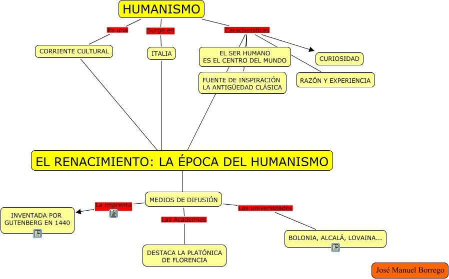 ¿A qué llamamos Humanismo?. El Humanismo es una corriente cultural que nace en Italia en el s. XIV y que se va a extender por Europa hasta el siglo XVI. Este movimiento cultural está muy ligado al Renacimiento. La palabra Humanismo viene de la palabra latina homo (hombre), y es que una de las características esenciales de este movimiento es colocar al ser humano en el centro del universo, espacio que en épocas anteriores había estado ocupado por Dios.¿Cuáles son sus principales características?:Colocar al ser humano en el centro del mundo, esta postura se enfrentaba a la mentalidad medieval que colocaba a Dios en el centro del mundo y todas las actividades giraban en torno a Dios, la Iglesia...Toman como fuente de inspiración la Antigüedad clásica (Grecia y Roma). Se inspiran en los textos cláscicos, no estudian las traducciones que de ellos se habían hecho en la Edad Media, quieren beber en las fuentes originales, sin intermediarios.La razón y la experiencia fueron dos premisas muy importantes para la búsqueda de la verdad. Investigaban, buscaban la verdad de las cosas de manera razonada.Aspiraron a dominar todo el saber de la época. Eran muy curiosos, no eran especialistas en una rama del saber, querían abarcarlo todo.