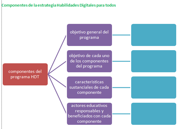 Competencias docentes en tic ¿Qué cambios ha tenido que realizar en su profesión docente para incorporar las TIC en a su practica diaria? Los cambios que se tendrían que realizar serian en este caso con los niños en preescolar introducirlos a la utilización de aparatos tecnológicos. Y una vez que ellos los puedan manipular buscar actividades donde se incluya la utilización de las TIC ¿Qué estrategias formativas se requieren para adquirir, desarrollar o fortalecer las competencias señaladas. · Alfabetizar a los niños en el uso de estas nuevas tecnologías, actualmente el 50% de los niños las conoces pero pocos les dan el uso adecuado. · Servir de guía para que los niños adquieran nuevos conocimientos formativos así como del uso y manejo de TIC. · La maestra tendrá que tener dominio del tema para elaborar prácticas donde los niños adquieran aprendizajes significativos. · Cambiar la estructura de las clases para dedicar un espacio al uso de las TIC ¿Qué estrategias se podrían implementar para favorecer el desarrollo de estas competencias en los alumnos, en los docentes, en los directivos y en los encargados de las aulas de medios? · Clases con uso de tecnologías · Creación de grupos colaborativos · Generar conocimientos con TICHabilidades digitales para todos Elementos que estructuran la estrategia HDT · Misión · Visión · Objetivos · Procesos Vinculación de la política educativa con la estrategia HDT Se vincula proponiendo modelos tecnológicos diferenciados para la atención de cada nivel educativo, promoviendo la participación activa y la conformación de redes colaborativas para la organización, control y gestión de actividades. Componentes de la estrategia Habilidades Digitales para todos