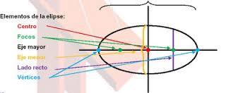ELEMENTOS DE UNA ELIPSE1.- Centro2.- focos3.- vértices4.- Intersecciones5.- eje mayor6.- eje menor7.- lado recto