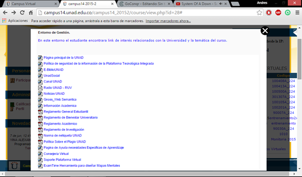 GESTIÓNEn este entorno el estudiante podrá encontrar diferentes links de interés relacionados con la universidad y la temática del curso.