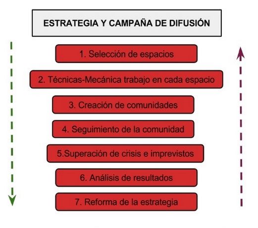 5. Estrategia y campaña de difusión.Esta etapa responde al cómo, al cuándo y al dónde:El siguiente árbol de decisión puede ayudar a decidir sobre qué perfiles de usuarios: http://goo.gl/nOJWWA