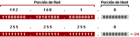 Siempre que se subnetea se hace a partir de una dirección de red Clase A, B, o C y está se adapta según los requerimientos de subredes y hosts por subred. Tengan en cuenta que no se puede subnetear una dirección de red sin Clase ya que ésta ya pasó por ese proceso, aclaro esto porque es un error muy común. Al direccionamiento que utiliza la máscara de red adaptada (subneteada), se lo denomina “direccionamiento sin clase” (classless addressing).En consecuencia, la Clase de una dirección IP es definida por su máscara de red y no por su dirección IP. Si una dirección tiene su máscara por defecto pertenece a una Clase A, B o C, de lo contrario no tiene Clase aunque por su IP pareciese la tuviese.Máscara de RedLa máscara de red se divide en 2 partes:Porción de Red: En el caso que la máscara sea por defecto, una dirección con Clase, la cantidad de bits “1” en la porción de red, indican la dirección de red, es decir, la parte de la dirección IP que va a ser común a todos los hosts de esa red. En el caso que sea una máscara adaptada, el tema es más complejo. La parte de la máscara de red cuyos octetos sean todos bits “1” indican la dirección de red y va a ser la parte de la dirección IP que va a ser común a todos los hosts de esa red, los bits “1” restantes son los que en la dirección IP se van a modificar para generar las diferentes subredes y van a ser común solo a los hosts que pertenecen a esa subred (así explicado parece engorroso, así que más abajo les dejo ejemplos).En ambos caso, con Clase o sin, determina el prefijo que suelen ver después de una dirección IP (ej: /8, /16, /24, /18, etc.) ya que ese número es la suma de la cantidad de bits “1” de la porción de red.Porción de Host: La cantidad de bits "0" en la porción de host de la máscara, indican que parte de la dirección de red se usa para asignar direcciones de host, es decir, la parte de la dirección IP que va a variar según se vayan asignando direcciones a los hosts.