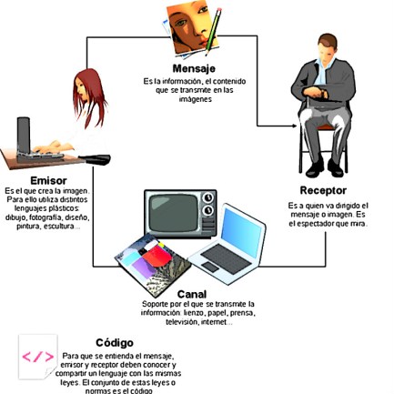 A la hora de comunicarse mediante imágenes, el peso se centra en los aspectos visuales.Una imagen se convierte en un mensaje cuando hay una compresión del mismo por las personas que la reciben.En el proceso comunicativo intervienen diferentes elementos: ·El Emisor:Crea la imagen que contiene la información o mensaje. Para hacerlo utiliza diferentes lenguajes plásticos: el dibujo, la fotografía, la pintura, la escultura, el diseño.... ·El Mensaje:La comunicación entre emisor y receptor se produce para compartir un contenido, en este caso una imagen, que es la información. ·El Receptor:Es a quien va dirigida la imagen. La comunicación no se produce si no existe alguien que recibe la información y entienda el mensaje. ·El Código:Para que el receptor entienda el mensaje debe utilizar un lenguaje visual y textual con las mismas leyes que el emisor, un mismo idioma visual: esto es lo que se conoce como código.La buena o mala articulación de estos códigos conlleva una buena o mala comunicación visual.
