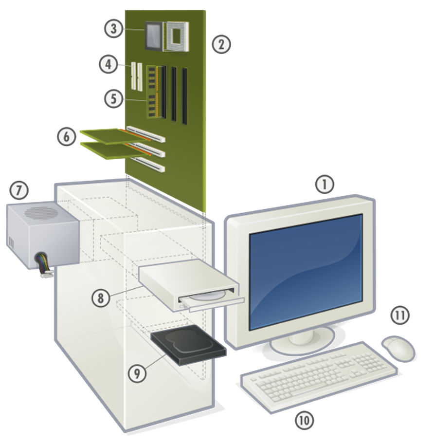 pertes externas e internas de la computadora1. parnatalla2. targeta madre3. procesador CPU o cerebro 4. ranura IDE5. memoria RAM6. targeta PCI (modem,video,audio,etc.7. fuente de poder o volateje8. lector DVD9. unidad de disco flexible10. teclado11. vocinas 12. mouse