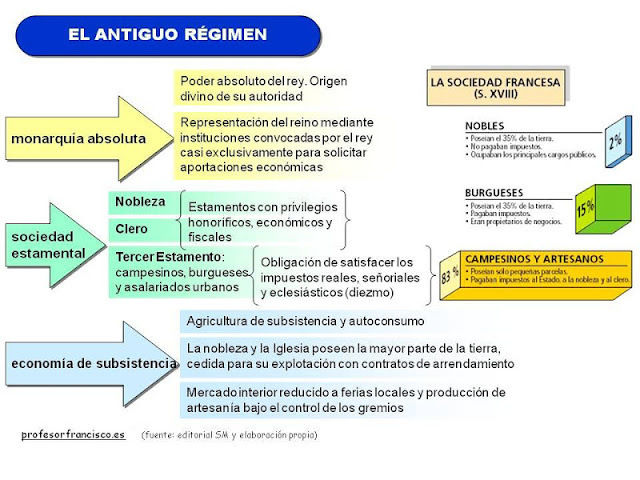 Vocabulario: ANTIGUO RÉGIMEN: Sistema de monarquía absoluta, sociedad estamental y economía feudal y rural que se desarrolla en Europa durante la Edad Moderna.