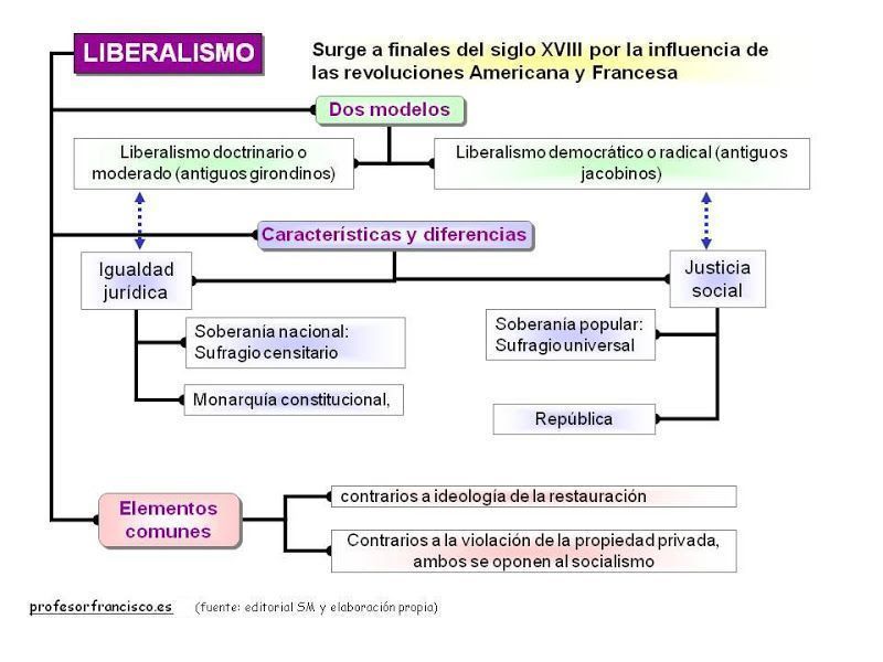 LIBERALISMO: Doctrina o conjunto de ideas surgidas a finales del siglo XVIII que defiende el individualismo, la iniciativa privada y limita la intervención de los poderes públicos (Estado).