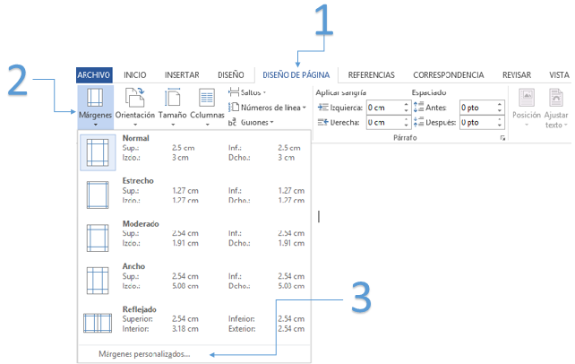 Barra de Menú, diseño de página. Márgenes. Márgenes personalizados