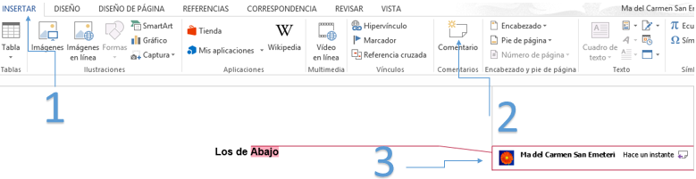 Hacer observaciones al trabajo realizado. Barra de menú, insertar. Comentario.