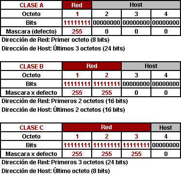 CLASES DE SUBNETEO:*Cada Clase tiene una máscara de red por defecto, la Clase A 255.0.0.0, la Clase B 255.255.0.0 y la Clase C 255.255.255.0. Al direccionamiento que utiliza la máscara de red por defecto, se lo denomina “direccionamiento con clase” (classful addressing).