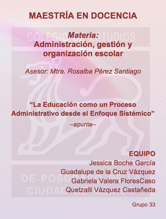 Es importante que como docentes, entendamos que somos administradores en nuestro quehacer cotidiano, pues el proceso de diagnosticar, planear, elegir estrategias para la obtención de mejores resultados, evaluar y reajustar, visto desde una mirada distinta, es propiamente un proceso administrativo; más allá del hecho de la administración institucional, en nuestra vida diaria, administramos los conocimientos y aprendizajes de nuestros alumnos. Dentro de los enfoques y teorías administrativas, encontramos el enfoque sistémico, enfoque por demás acorde a los procesos educativos y por ello mismo fusionar esta visión administrativa a la docencia es casi un fluir natural; en la escuela, se sistematiza tanto la forma de trabajo como la ministración de los conocimientos. Sabemos que la educación es un proceso que genera en los alumnos los saberes, habilidades y conocimientos necesarios para la vida. y si la tarea fundamental de la didáctica es organizar el proceso docente/educativo con bases teóricas y con un carácter sistemático, que se establece con un criterio lógico y pedagógico para lograr la máxima efectividad en la asimilación de los conocimientos, el desarrollo de habilidades y la formación de valores, con la finalidad de capacitar a los alumnos para que puedan cumplir exitosamente sus funciones sociales, prepararlos para la vida y el trabajo, entonces, el sistema educativo responde a la sociedad al formar ciudadanos útiles, en correspondencia con los valores que predominan, cumplir el perfil del egresado y las competencias que este debe lograr.