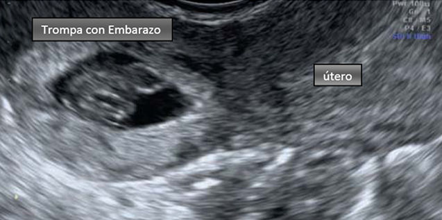 DIAGNÓSTICO CLÍNICO Retraso menstrual: Suele ser menor de 10 semanas Dolor abdominal: Dolor en bajo vientre o en una de las fosas iliacas, generalmente es continuo, de intensidad variable, puede acompañarse de tenesmo vesical y se exacerba con el examen ginecológico Sangrado genital: escaso, irregular, rojo oscuro EXAMEN GINECOLÓGICO Espéculo: sangrado endocavitario escaso y oscuro " en borra de café" Tacto: Utero aumentado de tamaño y reblandecido, tumoración anexial dolorosa, en forma de "salchicha" , poco móvil y separada del útero. en casos de amenorrea menor de 6 semanas, no suele revelarse signos de embarazo, pero la movilización uterina suele ser molesta, se palpa una masa anexial dolorosa y poco móvil Dolor a la palpación del fondo de saco posterior. Signo de Proust LABORATORIO Determinación cuantitativa de la sub-unidad B coriónica ( se encuentra disminuida según laedad gestacional) Progesterona, valores mayores de 25 mg/ml sugiere embarazo anormal como lo es el embarazo ectópico ECO tranvaginal: con criterio de diagnóstico que son: 1. Útero vacío, 2.masa anexial heterogénea, 3. Saco extrauterino con halo hipercogénico alrrededor, 4. Saco con vesicula vitelina o botón embrionario con o sin actividad cardíaca extrauterina Culdocentecis positiva: es la presencia de sangre no cuagulable en el fondo de saco de Douglas Biopsia endometrial: reacción residual si vellosidad corial NOTA: el diagnóstico definitivo del embarazo ectópico no complicado se hace por laparoscopia