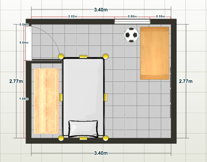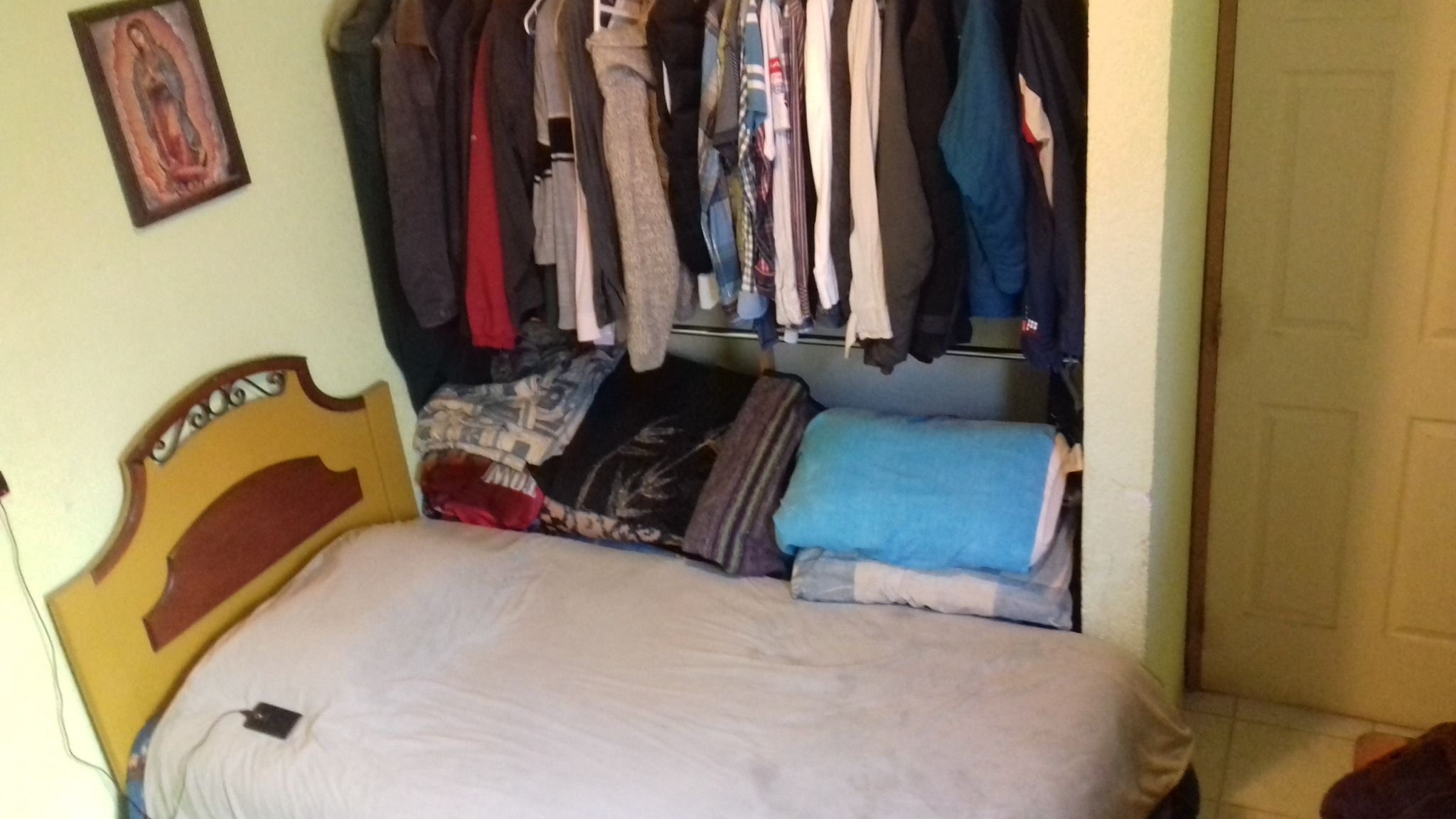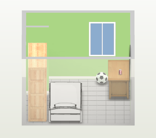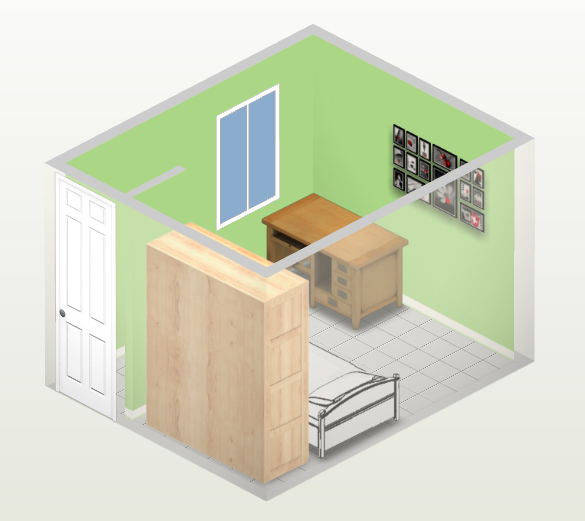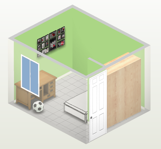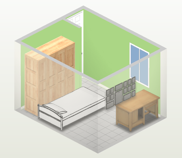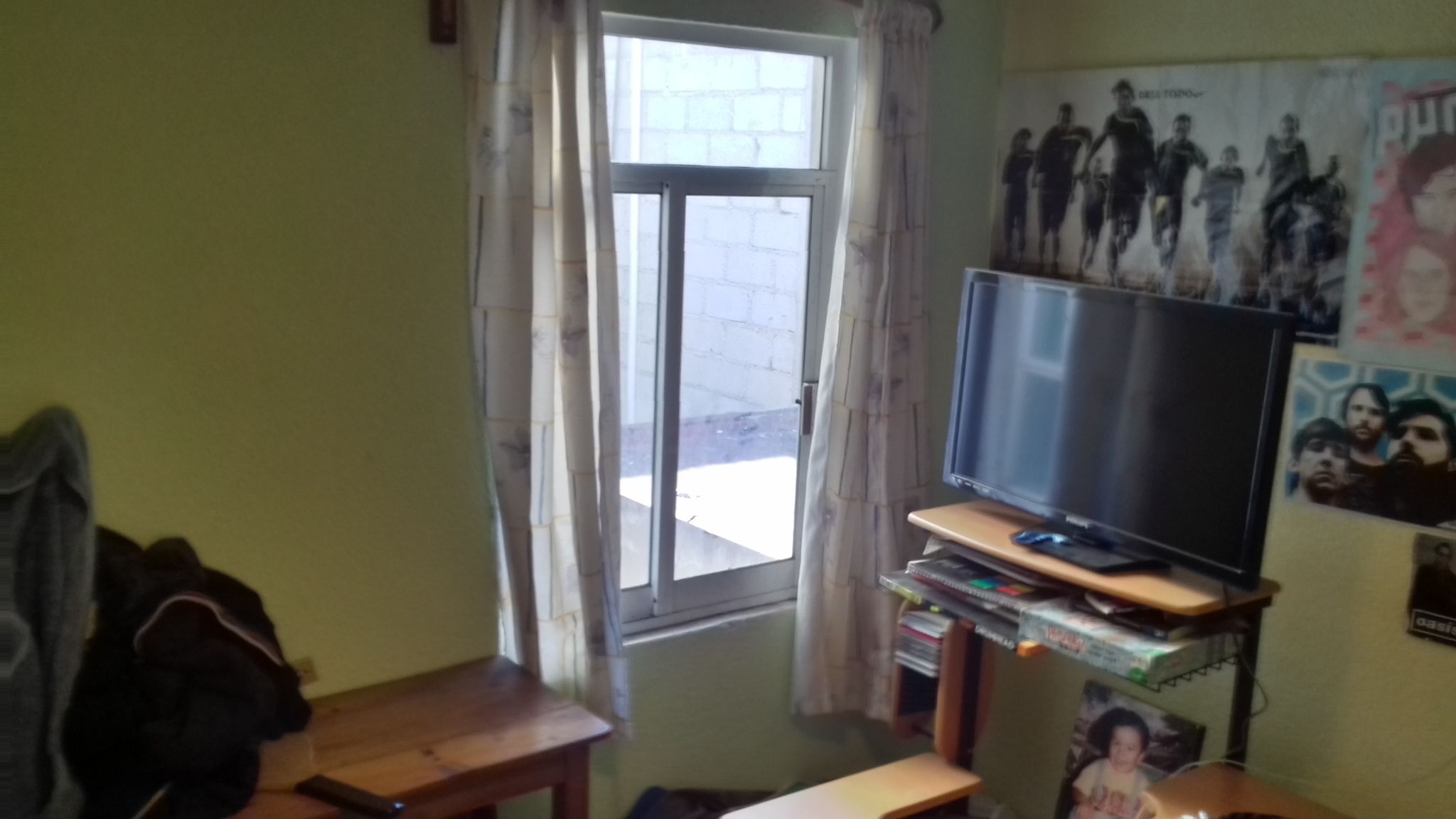 Mi habitación se encuentra en un segundo piso y esta construida de muros de concreto, a la entrada una puerta de madera y tambien una ventana, al interior tiene una cama, ropa colgada, un mueble con papeles, una pantalla y demas cosas y la batería que se ocupara para ensayar a continuación muestro un diseño en 3D con sus respectivas dimensiones.