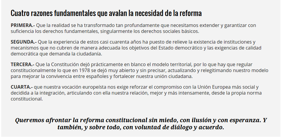 1. Introducción : La Constitución Española del 1978 La Constitución Española del 1978 es la norma suprema del ordenamiento jurídico del Reino de España a la que están sujetos los poderes políticos y los ciudadanos de España , en vigor desde el 29 de Diciembre de 1978. 2. Historia de la Constitución Española del 1978 La historia constitucional de España se desarrolló durante todo el siglo XIX y principios del XX , y se caracteriza por una habitual inestabilidad de los numerosos textos constitucionales , que suelen tener un carácter partidista y de ruptura , contando con escaso apoyo e indiferencia entre el pueblo. Todo ello provoca que las constituciones tuvieran, por regla general, una escasa duración, sucediéndose un gran numero de textos a lo largo de cortos períodos. 3. Estructura de la Constitución Española La Constitución Española de 1978 se compone de un preámbulo, once títulos (un Título Preliminar y diez numerados), cuatro disposiciones adicionales, nueve transitorias, una derogatoria y una final. Siguiendo la tradición francesa, su contenido puede estructurarse en una parte dogmática, con los principios constitucionales y los derechos fundamentales, y una parte orgánica, con la división de poderes y la organización política y territorial. 4. Los padres de la Constitución del 1978 1. GABRIEL CISNEROS LABORDA - Ponente por: Unión del Centro Democrático (UCD) 2. MANUEL FRAGA IRIBARNE -Ponente por: Alianza Popular ( AP) 3. MIGUEL HERRERO RODRÍGUEZ DE MIÑÓN -Ponente por: Unión del Centro Democrático (UCD) 4. JORDI SOLÉ TURÁ -Ponente por: Partido Socialista Unificado de Cataluña (PSUC) 5. JOSÉ PEDRO PÉREZ-LLORCA RODRIGO -Ponente por: Unión del Centro Democrático (UCD) 6. MIQUEL ROCA I JUNYENT -Ponente por: Pacte Democràtic per Catalunya 7. GREGORIO PECES-BARBA -Ponente por: Partido Socialista Obrero Español (PSOE) 5. La Reforma Constitucional La reforma constitucional española de 2011 modificó el artículo 135 de la vigente Constitución estableciendo en el texto el concepto de estabilidad presupuestaria y que el pago de la deuda pública fuese lo primero a pagar frente a cualquier otro gasto del Estado en los presupuestos generales, sin enmienda o modificación posible. La entrada en vigor de parte del artículo se demora a 2020. Es la segunda reforma constitucional tras la de 1992. 6. La estructura de la constitución 1.- Estructura de la Constitución de 1978. La Constitución de 1978 consta de diez Títulos más uno preliminar, un preámbulo y varias disposiciones. Los títulos se subdividen a su vez en Capítulos y Secciones, y todos ellos suman en total 169 Artículos, que en ocasiones, se dividen en distintos apartados. Podemos dividirla en dos partes. La primera parte es la parte dogmática, donde se recoge la ideosincrasia y los principios constitucionales. Esta parte dogmática la forman: El Preámbulo: en el cual se expresa la voluntad de la Nación española de crear una constitución, un Estado de Derecho y una democracia. Título Preliminar: que abarca los artículos del 1 al 9 y establece la soberanía nacional, la monarquía parlamentaria y aclara asuntos generales como la lengua, bandera, capital, etc.