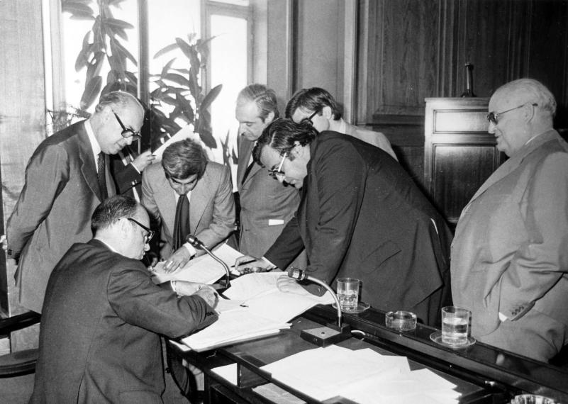 1.1.- PADRES DE LA CONSTITUCIÓN. Como padres de la Constitución se conoce en España a los siete ponentes que se encargaron de la redacción de la Constitución española de 1978: Gabriel Cisneros Laborda: Licenciado y doctor en Derecho, además cursó estudios de Ciencias Políticas y Periodismo. Aprobó las oposiciones al Cuerpo General Técnico de la Administración Civil del Estado. En 1989 ingresó en el Partido Popular, y mantuvo su condición de Diputado al Congreso. Desde 1990 formó parte de la Ejecutiva del PP y fue reelegido diputado en los comicios de 1989, 1993, 1996, 2000 y 2004. Enfermo de cáncer, el día 2 de noviembre de 2006, sufrió un desvanecimiento en el Congreso de los Diputados, causado por complicaciones propias de la enfermedad que sufría. Falleció en Murcia, acompañado de sus tres hijos, el 27 de julio de 2007. Con motivo de su muerte, Mariano Rajoy, como homenaje a su labor como Padre de la Constitución dijo "La Constitución sigue ahí, Gabriel Cisneros, por tanto, sigue con nosotros". Manuel Fraga Iribarne: fue un político, diplomático y profesor español de Derecho. Fue profesor catedrático de Derecho Político y de Teoría del Estado y Derecho Constitucional; doctor en Derecho y licenciado en Ciencias Políticas y Económicas. Además de diputado y senador durante muchos años, fue uno de los padres de la actual Constitución española de 1978; fundador del partido Reforma Democrática, embrión de Alianza Popular y, a su vez, del actual Partido Popular de España; y candidato a la presidencia del Gobierno de España entre 1977 y 1986. Miguel Herrero Rodríguez de Miñón: fue Secretario General Técnico del Ministerio de Justicia, colaborando de manera muy activa en la primera amnistía (1976), en la Ley para la Reforma Política y en la primera normativa electoral de la recién nacida democracia. Participó en la elaboración de la Constitución de 1978 y ocupó el cargo de portavoz en el Congreso de los diputados, tanto del partido del Gobierno (UCD) como de la oposición (AP). Fue diputado de UCD de 1977 a 1981, y de AP y del PP en 1982, 1986 y 1989. En 1987 optó a la Presidencia de Alianza Popular, pero fue derrotado por Antonio Hernández Mancha. En noviembre de 2004 se dio de baja como militante del Partido Popular. Gregorio Peces-Barba Martínez: se licenció en Derecho en la Universidad Complutense de Madrid y se doctoró cum laudecon una tesis sobre el pensamiento social y político de Jacques Maritain. En la Universidad de Estrasburgo obtuvo la licenciatura de Derecho comparado. El 17 de diciembre de 2004 fue nombrado alto comisionado para el Apoyo a las Víctimas del Terrorismo por el Consejo de Ministros. Se trataba de un cargo de nueva creación, con rango de secretario de Estado, que debía coordinar la acción de varios ministerios. Durante esa etapa sufrió fuertes críticas por parte del PP y de la Asociación de Víctimas del Terrorismo. José Pedro Pérez-Llorca Rodrigo: se licenció en Derecho por la Universidad Complutense con premio extraordinario fin de carrera. Se integró en la Unión de Centro Democrático y Adolfo Suárez lo nombró en la I Legislatura sucesivamente Ministro de la Presidencia, Ministro de Administración Territorial en 1980 y, ese mismo año, en una nueva remodelación del gobierno, Ministro de Asuntos Exteriores, cargo que ocupó también tras el fallido golpe de estado de 1981 con el gobierno de Leopoldo Calvo-Sotelo y hasta la victoria electoral del PSOE en el otoño de 1982. Fue diputado en el Congreso desde 1977 a 1982. Miquel Roca i Junyet: Desde la constitución de Convergencia Democrática de Cataluña en 1974 y hasta 1979 ocupó su secretaría general adjunta. Fracasó su intento de vertebrar un partido centrista, al estilo de Convergència i Unió, en el resto de España: el Partido Reformista Democrático (PRD). Jordi Solé Tura: fue elegido diputado nacional por Barcelona en junio de 1977 y marzo de 1979. Más tarde terminaría abandonando el PSUC e ingresando en el Partit dels Socialistes de Catalunya (PSC-PSOE) y siendo de nuevo elegido diputado por Barcelona en 1989, 1993 y 1996.