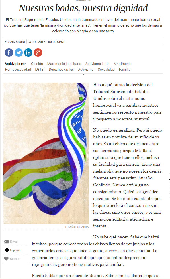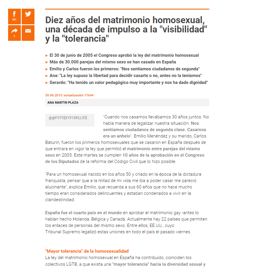 COMENTARIO/ CRÍTICA SOBRE LOS MATRIMONIOS HOMOSEXUALESEl matrimonio homosexual es algo que nosotros fingimos que ya es normal, pero sin embargo, la mayor parte de las personas no lo tienen asimilado y lo critican. No es una imagen muy normal a nuestros ojos, y menos a los ojos de las personas ancianas, que tienen pensamientos muy anticuados y fijos.En nuestro país no es aceptado de modo absoluto, pero deberíamos pensar en esas personas, que también tienen sus derechos y se merecen también casarse con la persona que quieran, y demostrar su cariño como ellos decidan. Si quisieran, también deberían poder adoptar a niños, no quiere decir que porque les gusten personas de su mismo sexo no tengan la misma capacidad que tiene otra persona para cumplir con sus responsabilidades. Hay personas que dicen que los matrimonios homosexuales no deberían adoptar a los niños porque creen que los hijos también tendrían su misma orientación sexual.