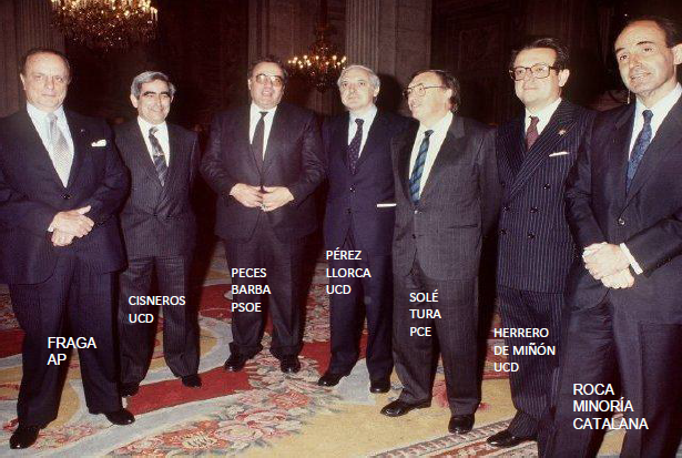 Las Cortes iniciaron los trabajos para elaborar la Constitución. Las Cortes elegidas en 1977 se convirtieron inmediatamente en Cortes Constituyentes.Se eligió una Comisión Constitucional y esta eligió a siete diputados para elaborar un primer texto como proyecto constitucional. Estos siete diputados, los "padres de la constitución" fueron Gabriel Cisneros, Miguel Herrero de Miñón, José Pedro Pérez Llorca, Gregorio Peces-Barba, Jordi Solé Turá, Miquel Roca Y Manuel Fraga.