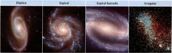 Las galaxias son agrupaciones de miles o millones de estrellas, rocas, polvos y gases. Las clasificamos según su forma en espirales, elípticas o irregularesEl Sistema Solar, se encuentra en una galaxia con forma espiral, llamada Vía Láctea. Nos encontramos en uno de los brazos de la galaxia muy lejos del centro de la misma.Lo que nosotros podemos ver a simple vista, son elementos que están en nuestra galaxia, las demás galaxias y elementos del universo están tan lejos que para verlos hemos de usar telescopios.