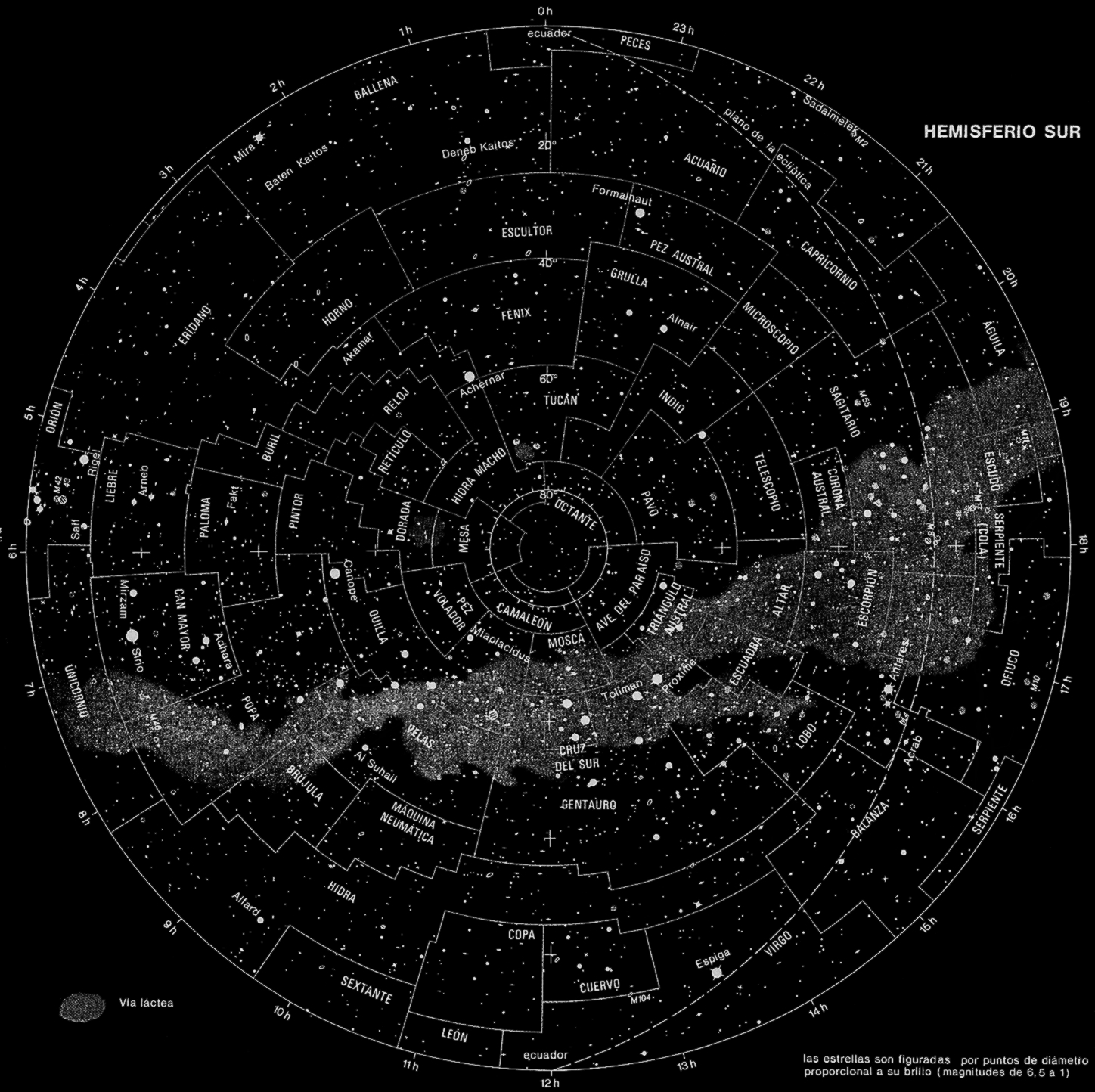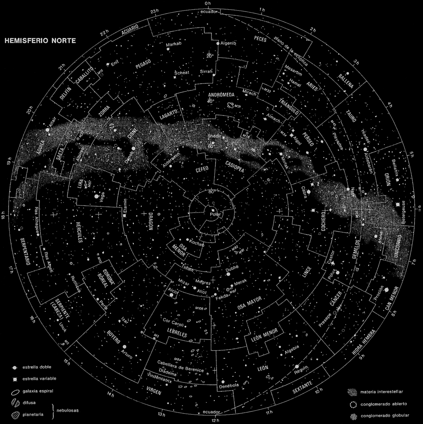 Aquí podéis ver como son las constelaciones del hemisferio norte y del hemisferio sur.
