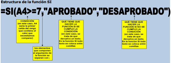 FUNCIÓN SIEs una función lógica que implica condiciones, es decir, que frente a una situación dada aparecen dos alternativas posibles: si se cumple la condición, la función debe devolver algo (un número o una palabra) si no se cumple la condición, la función debe devolver otra cosa (un número o una palabra) Pero muchas veces, dentro de la función SI debemos de hacer algún tipo de calculo, porque necesitamos que devuelva un número.Puede tener dos resultados: puede ser VERDADERO o FALSO.