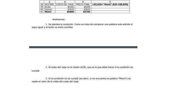 FUNCIÓN SI Es una función lógica que implica condiciones, es decir, que frente una cierta situación aparecen 2 posibles opciones: Si se cumple devuelve un número o palabra Si no se cumple devuelve otro número o palabra Esto también podría llamarse prueba lógica que es la expresión a evaluar.Se utiliza para realizar pruebas condicionales como valores y fórmulas.Muchas veces, dentro de la función SI debemos hacer un cierto cálculo, porque queremos que devuelva un número.Un ejemplo de esto, se muestra a continuación: