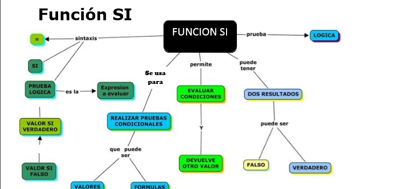 Funciones lógicas: SI La función SI es una función lógica que, tal como su nombre lo indica, implica condiciones. Es decir que frente a una situación dada (condición) aparecen dos alternativas posibles: -si se cumple la condición, la función debe devolver algo (un número o una palabra) -si no se cumple la condición, la función debe devolver otra cosa (un número o una palabra.