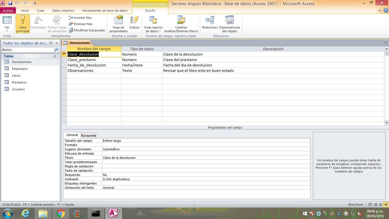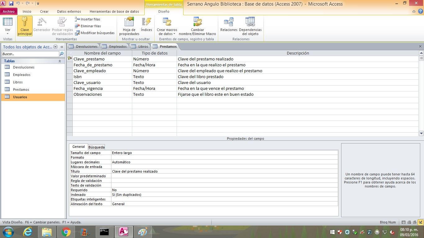 Evidencia de las tablas de biblioteca y relaciones