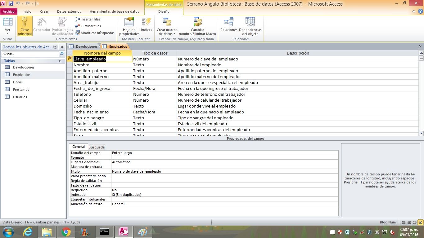 Tabla Prestamos, Devoluciones, Usuarios y Empleados
