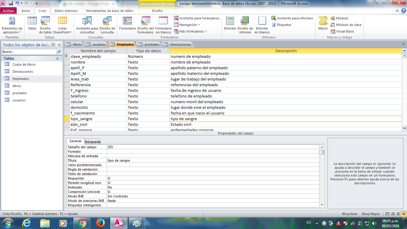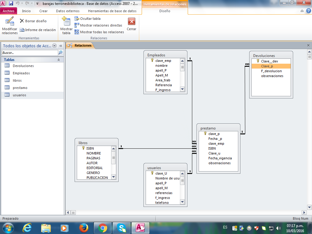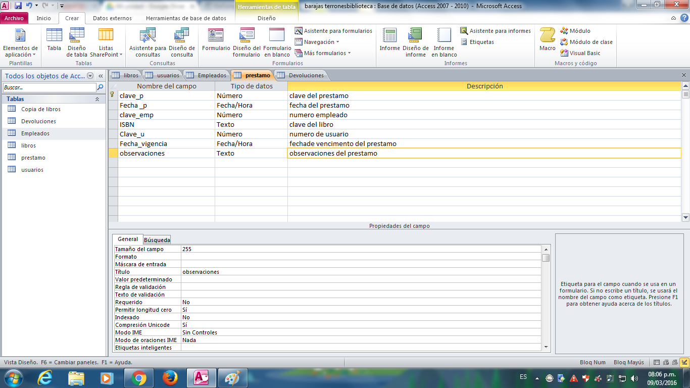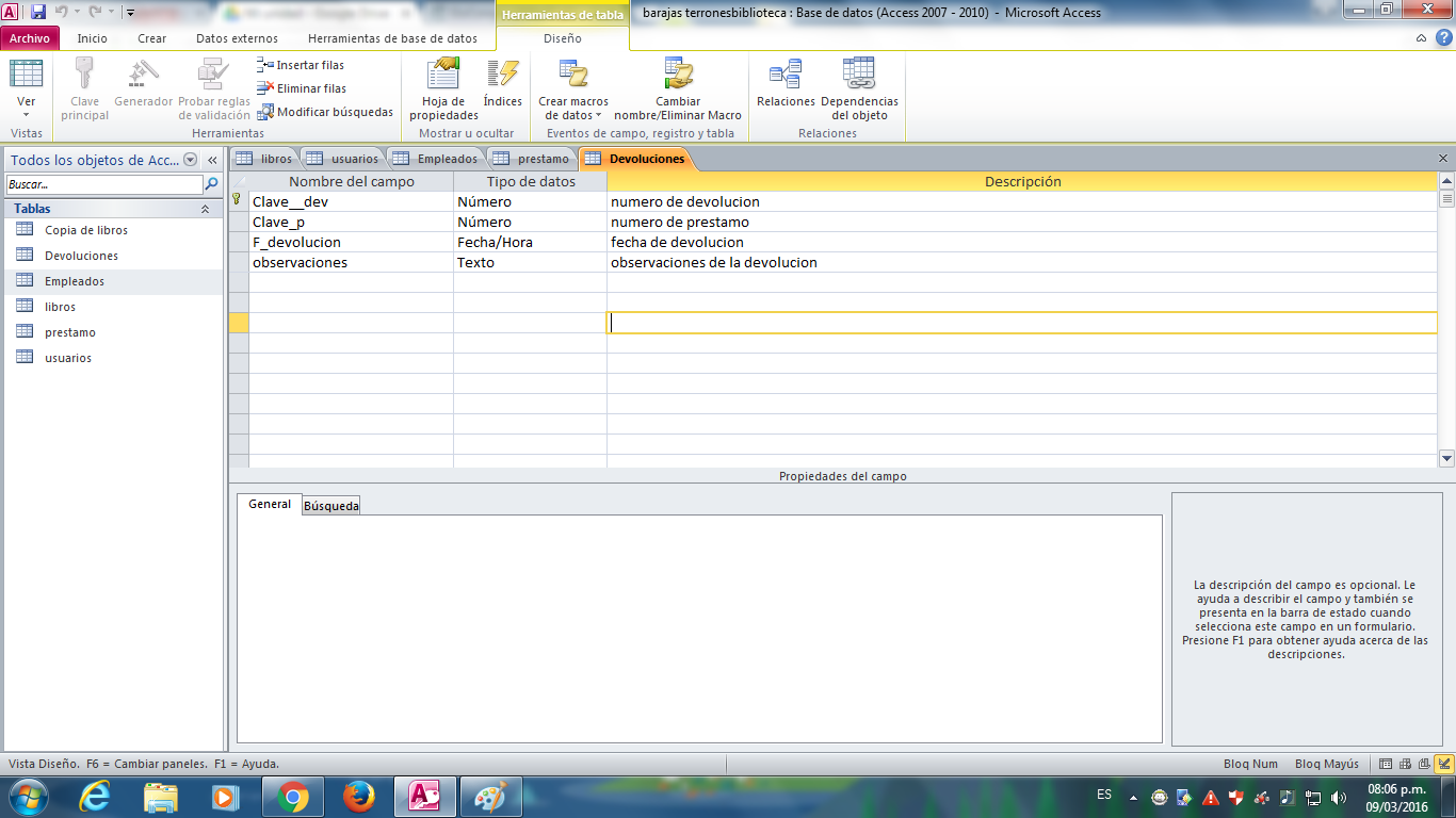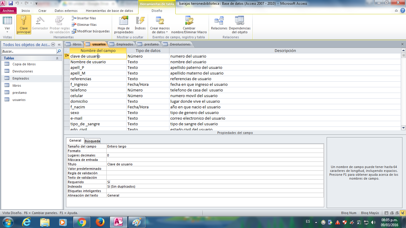 Evidencia de las tablas usuario, empleado, préstamo y devolución