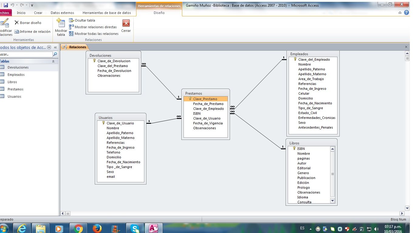 Tabla Prestamos, Devoluciones, Usuarios y Empleados