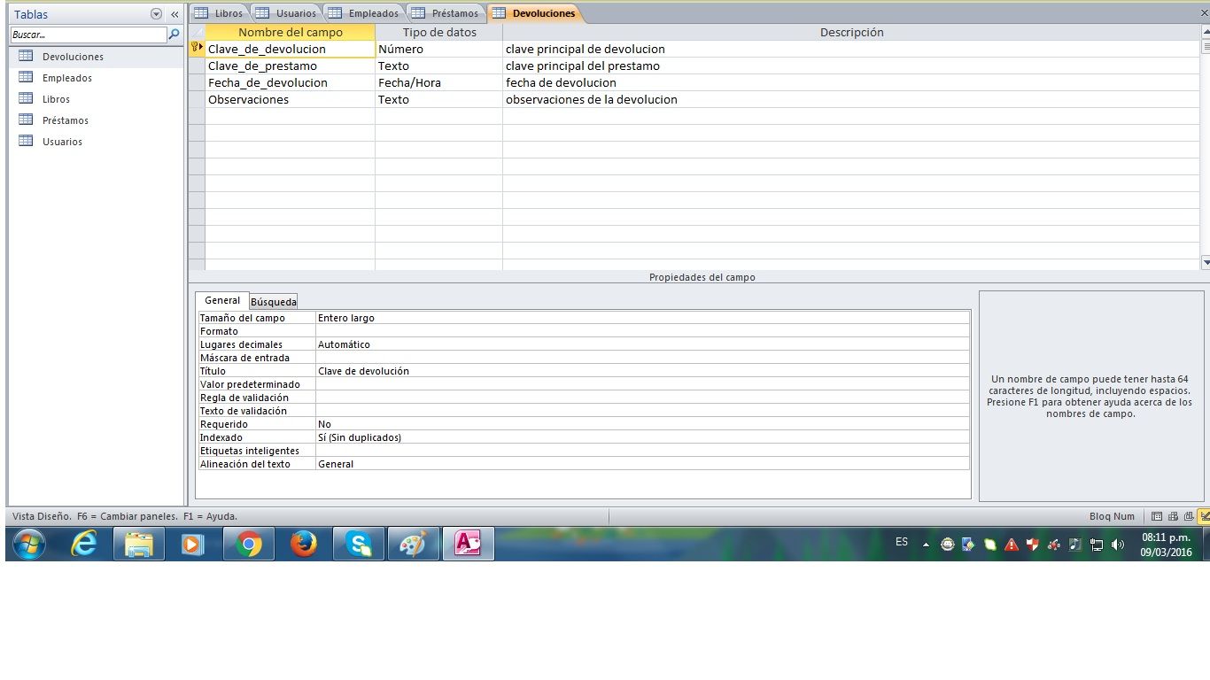 Tabla Prestamos, Devoluciones, Usuarios y Empleados