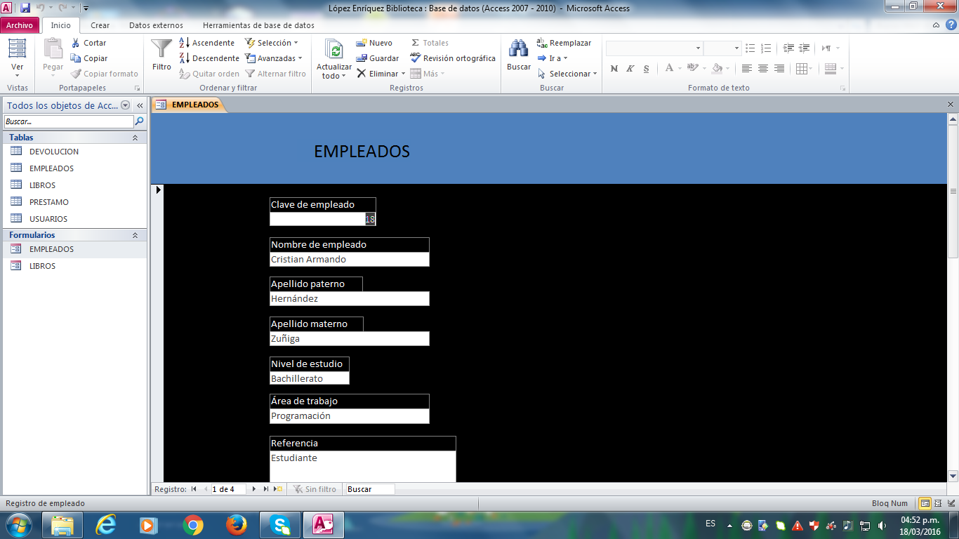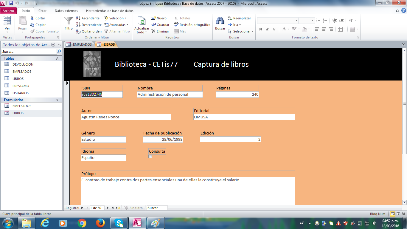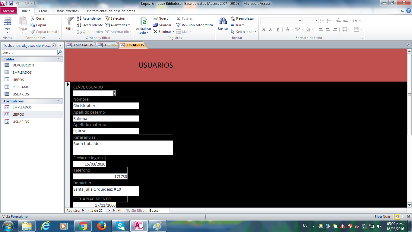 Evidencia de formularios de Libros, Usuarios,Empleados