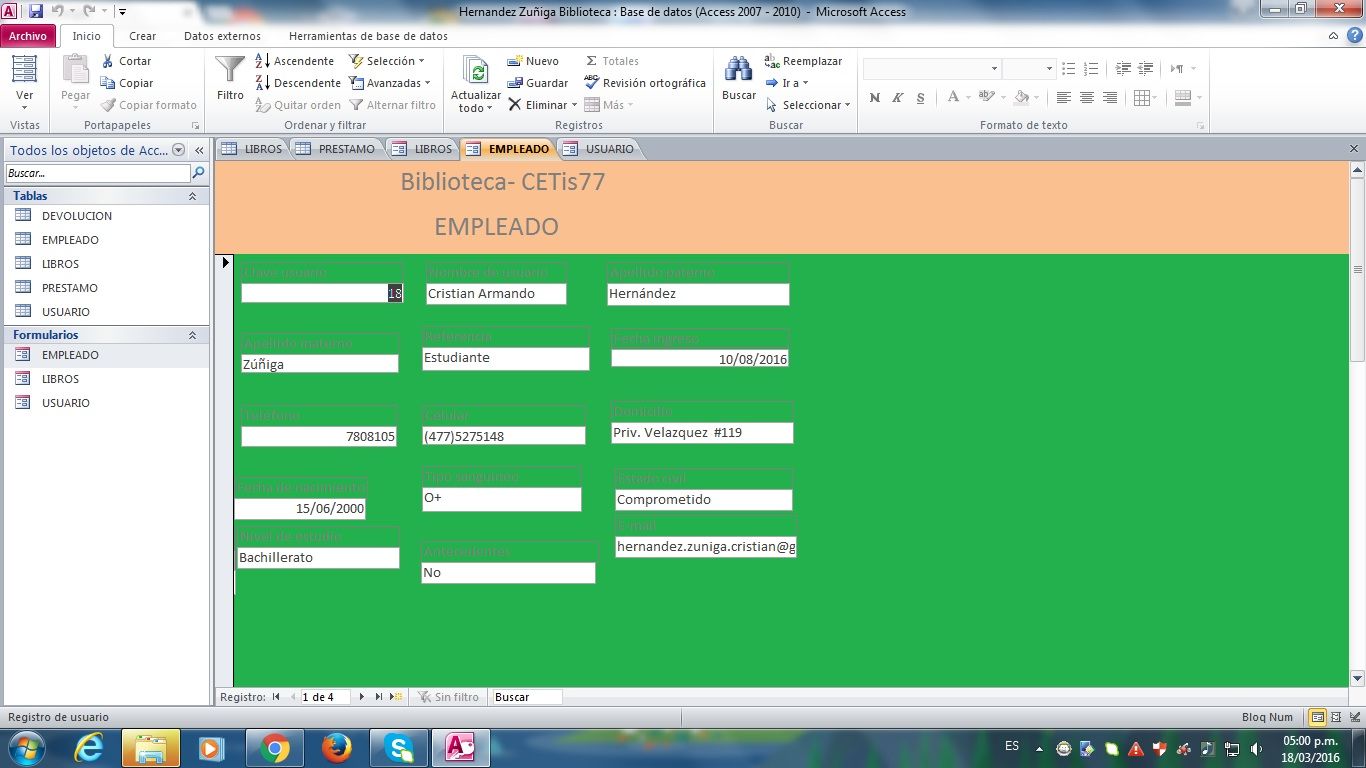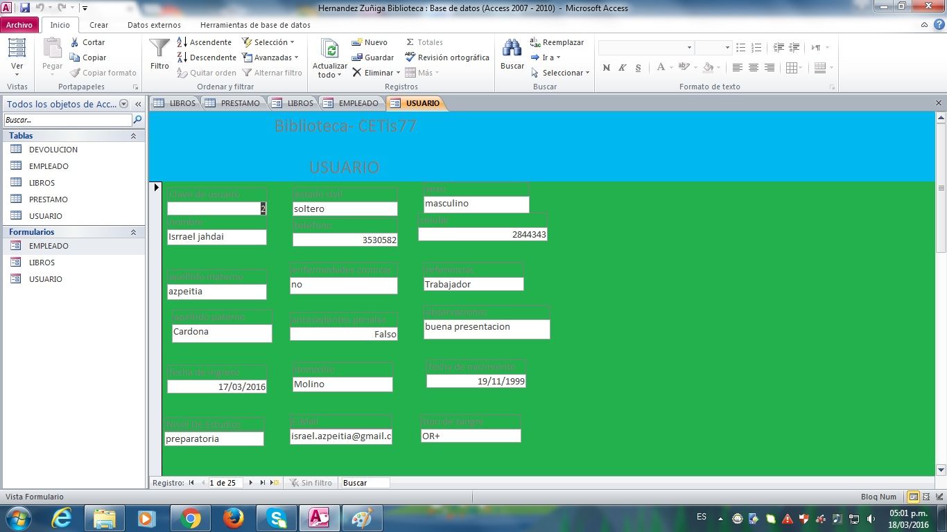Evidencia de formularios de Libros, Usuarios,Empleados