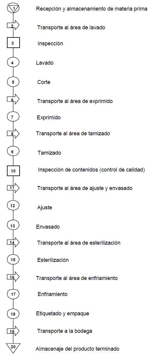 PROCESAMIENTO DE JUGOSDEFINICIONDe acuerdo con el Códex Alimentarius, por jugo de fruta se entiende el líquido sin fermentar, pero fermentable, que se obtiene de la parte comestible de frutas en buen estado, debidamente maduras y frescas o frutas que se han mantenido en buen estado por procedimientos adecuados, inclusive por tratamientos de superficie aplicados después de la cosecha. Algunos jugos podrán elaborarse junto con sus pepitas, semillas y pieles, que normalmente no se incorporan al jugo, aunque serán aceptables algunas partes o componentes de pepitas, semillas y pieles que no puedan eliminarse mediante las Buenas Prácticas de Manufactura (BPM).Los jugos se preparan mediante procedimientos adecuados que mantienen las características físicas, químicas, organolépticas y nutricionales esenciales de la fruta de que proceden. Podrán ser turbios o claros y podrá añadirse pulpa obtenida por procedimientos físicos adecuados del mismo tipo de fruta. Un jugo mixto es el que se obtiene mezclando dos o más jugos, o jugos y purés de diferentes tipos de frutas. En términos generales, los jugos de fruta deben conservar el color, sabor y grados brix de las frutas originalmente exprimidas, salvo cuando se aclare que el producto listo para su consumo contiene azúcares añadidos.Procesamiento:1.Recepción y almacenamiento de materia prima - Por lo general la naranja es transportada a granel (su consistencia lo permite). Hay que evitar golpear las naranjas ya que fácilmente se estropearían por la zona del golpe si estuviesen almacenadas algunos días. El almacenamiento de la naranja debe hacerse en un lugar fresco, de humedad media de forma que no gravite mucho peso sobre el fruto. El almacenamiento no debe prolongarse más de 15 días en condiciones normales. 2. Transporte al área de lavado - El producto se transporta por medio de cajas de campo al área de lavado. 3. Inspección.- Las cajas con naranjas se vacían en una banda transportadora donde se realiza una selección para eliminar aquellos frutos que no reúnan las debidas condiciones, bien sea por daño, alteración o descomposición. 4.Lavado.- Las naranjas se someten a una ducha de agua a presión, con este lavado se trata de eliminar el polvo y demás micro-organismos procedentes de la tierra o campo, para que el lavado sea mejor se le puede agregar al agua fungicidas, cloros o lejía comercial. 5.Corte - Lavados los frutos se procede a su cortado en dos mitades, para poder agotar o aprovechar mejor el zumo es conveniente cortar las naranjas por el ecuador. El corte lo realizan manualmente los trabajadores usando cuchillos o guillotinas. Las medias naranjas se vierten en bandejas de plástico o cubetas. 6.Transporte al área de exprimido - Se transportan las bandejas o cubetas a la máquina exprimidora.7. Exprimido - Debido a la poca producción de una micro/empresa lo más conveniente es la utilización de una exprimidora manual de zumos, que consta de una caja metálica de acero inoxidable, que está dispuesta en posición inclinada para su fácil vaciado. Dentro de la caja metálica están situadas unas piñas giratorias (normalmente cinco) de diferentes diámetros, que son donde se exprimirán las naranjas. El jugo car en cubetas. 8.Transporte al área de tamizado - Se transporta a la máquina tamizadora, este transporte se realiza manualmente por los trabajadores. 9.Tamizado - El zumo obtenido generalmente lleva pulpa y semilla por lo que es necesario tamizarlo. En esta operación el zumo se introduce por la tolva de alimentación de la máquina tamizadora donde un tomillo helicoidal lo arrastra hacia la tela metálica que es la que impide el paso de la pulpa y huesos, los que son expulsados por la parte posterior de la máquina. El zumo se deposita en tinas o cubetas por medio de la tolva de salida de zumo de la máquina tamizadora. 10.Inspección de contenidos y control de calidad - En este punto se procede a determinar el contenido en azúcar, ácido cítrico, vitamina C, pulpa y sabor o aceites esenciales residuales. 11.Transporte al área de ajuste y envasado - El transporte se realiza por los trabajadores mismos que vacian el contenido de las cubetas en el tanque para mezclar el equipo para ajuste. 12. Ajuste - El ajuste consiste en regular las variaciones del azúcar y ácido contenidas en el jugo, así como para mezclar los conservadores requeridos, siendo los más usuales entre otras, benzoato de sodio, sulfito y bisulfito de sodio, así como anhídrido sulfuroso. La mezcla de los conservadores con el jugo no es instantánea, sino que necesita cierto tiempo de agitación. Este proceso de ajuste se realiza en un tanque donde la mezcla se realiza por medio de un motor agitador. 13.Envasado - Los zumos, convenientemente ajustados, mezclados y uniformados en el tanque del equipo para el ajuste de zumos, se envían por gravedad, por un tubo, a la válvula de llenado, la cual tiene una llave o grifo que se maneja manualmente cada vez que se cambia el envase. Antes de cerrar el envase se calienta con su contenido para sacar el oxígeno que hay en la botella y evitar la oxidación del jugo. Una vez efectuado esto se procede a tapar el envase. 14.Transporte a esterilización - Se transportan los envases a la máquina autoclave. 15.Esterilización -Para realizar la pasteurización se usará un autoclave que servirá para destruir los microorganismos, es recomendable tratamientos de temperatura altas en corto tiempo, las normas generales sobre temperaturas y tiempos de tratamiento para envases: de 500 grs. 10 minutos a 115° C. envases de 1 kg: 15 minutos a 115°C. 16.Transporte al área de enfriamiento - El producto se transporta al área de enfriamiento. 17.Enfriamiento - En este punto del proceso el producto es rociado con agua o sumergido en ella para alcanzar la temperatura ambiente. 18.Etiquetado y empaquetado - Se coloca a los envases la etiqueta posteriormente se empaca en cajas de cartón. 19.Transporte 