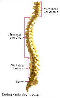 Columna vertebral: Se divide en varias posiciones para su estudio: Columna cervical Columna Dorsal o torácica Columna lumbar Sacro Coxis Está formadas escensialmente por elementos óseos discoideos y regularmente superpuestos, las vertebras.