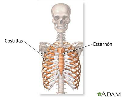 Costillas Son huesos planos, dispuestos en forma de arco entre la columna vertebral y el esternón, son 24, 12 por cada lado. Todas se articulan por detrás con las 12 vertebras dorsales.Cada costilla se compone de dos porciones: Porción posterior u ósea: costilla ósea propiamente dicha. Porción anterior, cartilaginosa: costilla cartilaginosa o cartílago costal. Las siete primeras se articulan con el esternón y se llaman esternales o verdaderas.Las cinco ultimas sin relación directa con el esternón se llaman costillas falsas. Se fusionan entre si para unirse al cartílago costal de la 7ma costilla verdadera.La dos últimas falsas libres en toda su extensión, se llaman costillas flotantes.